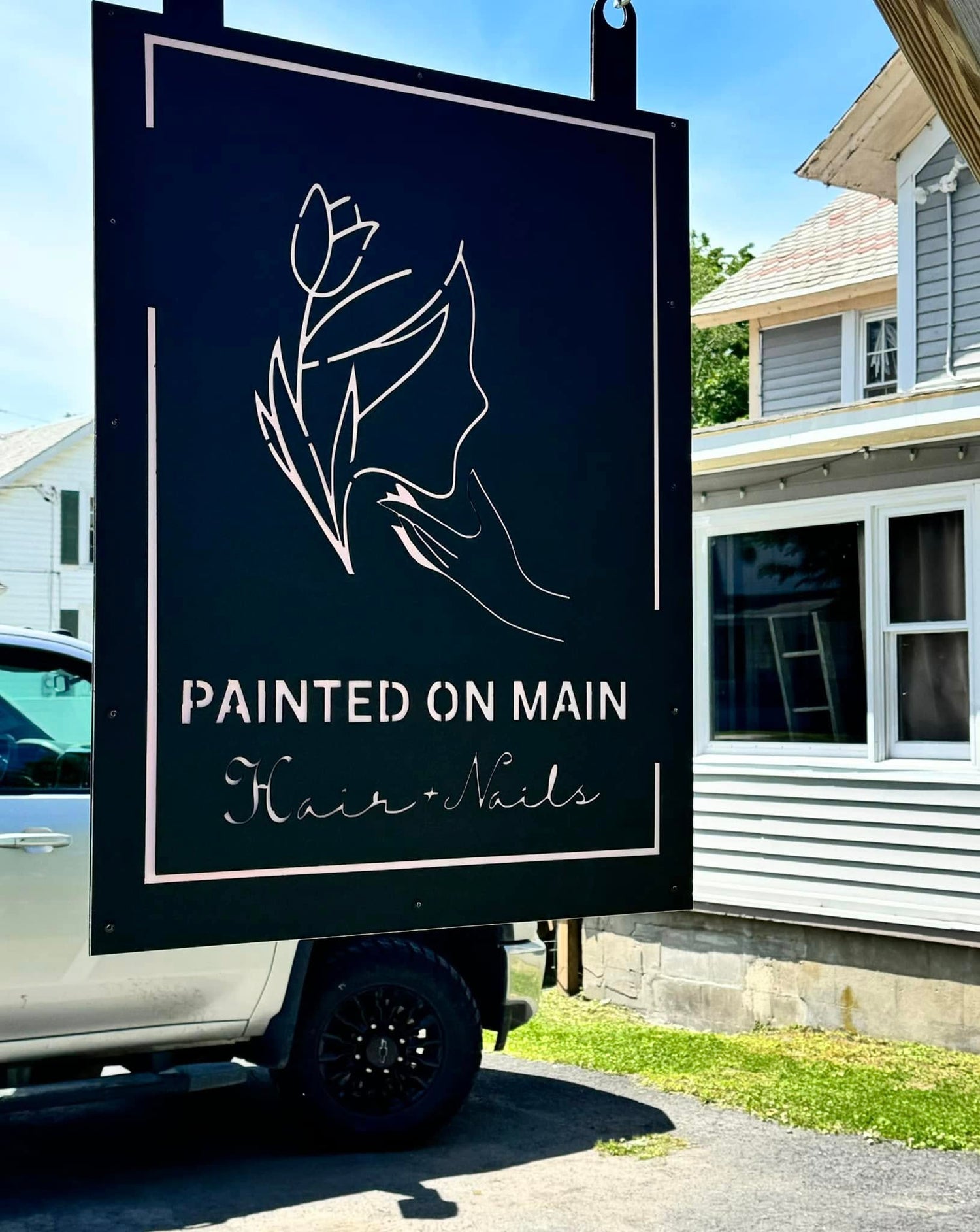 A huge thank you to Jonesy’s Metal Designs for this awesome sign marking our salon’s new home! - Painted on Main